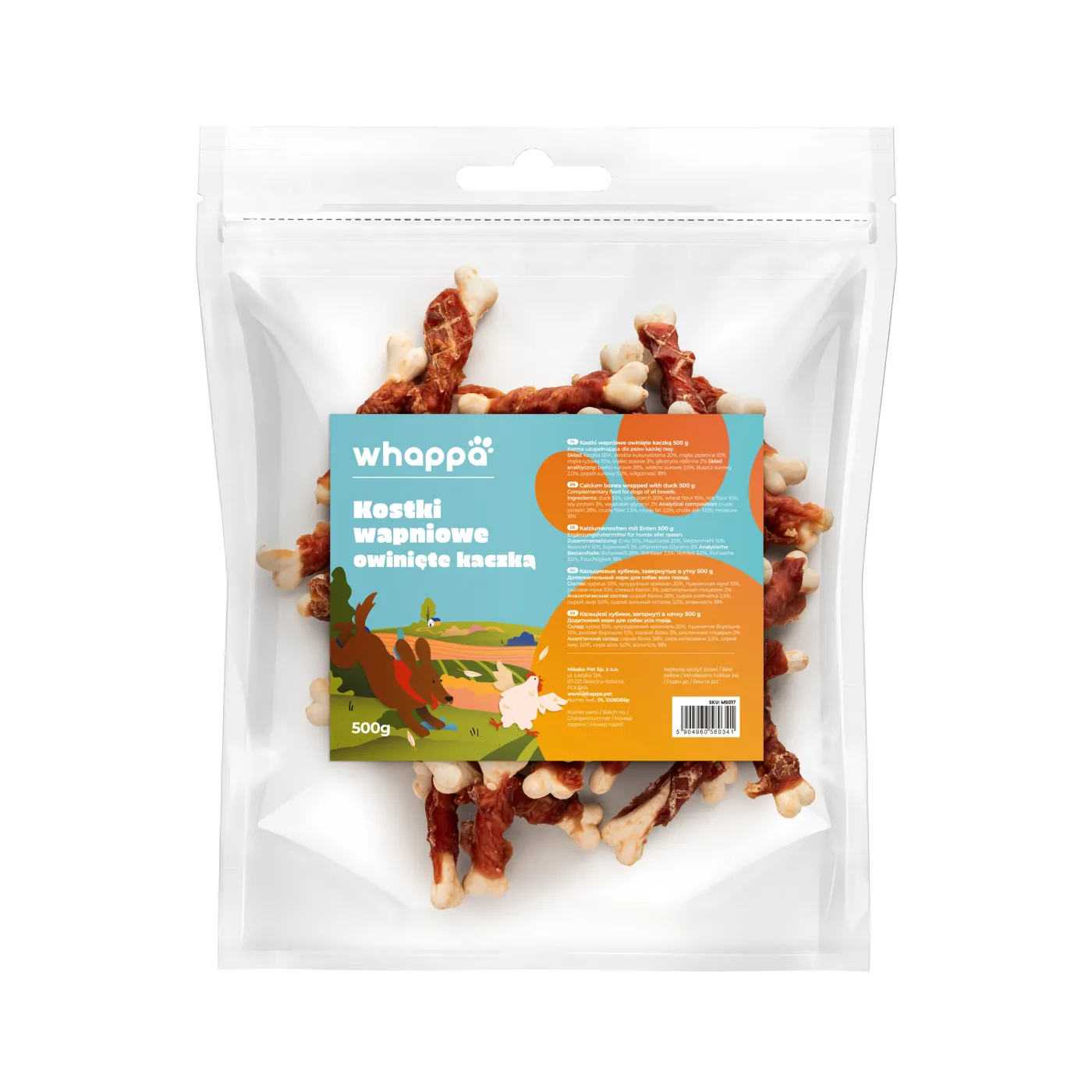 kaczką 500g – naturalny przysmak dla psa, który wspiera zdrowie kości i zębów.