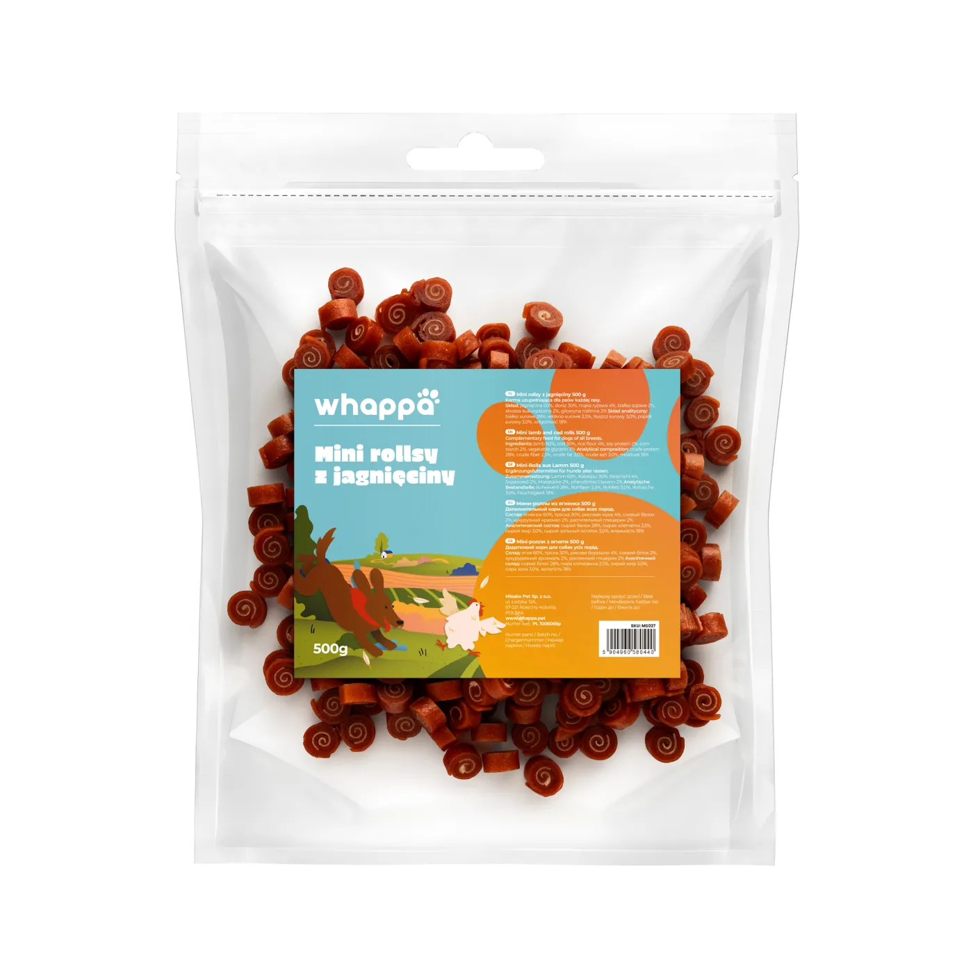 Whappa rollsy z jagnięciny z dorszem 500g – naturalny przysmak dla psa z