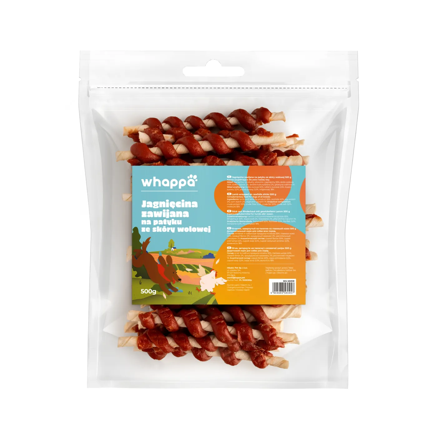 Whappa zawijasy z jagnięciną i skórą wołową 500g – naturalny przysmak dla