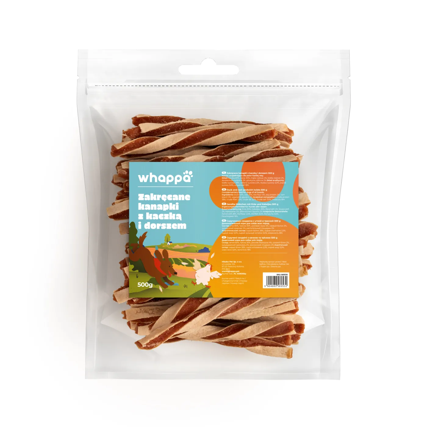 Skład: kaczka 60%, dorsz 30%, mąka ryżowa
