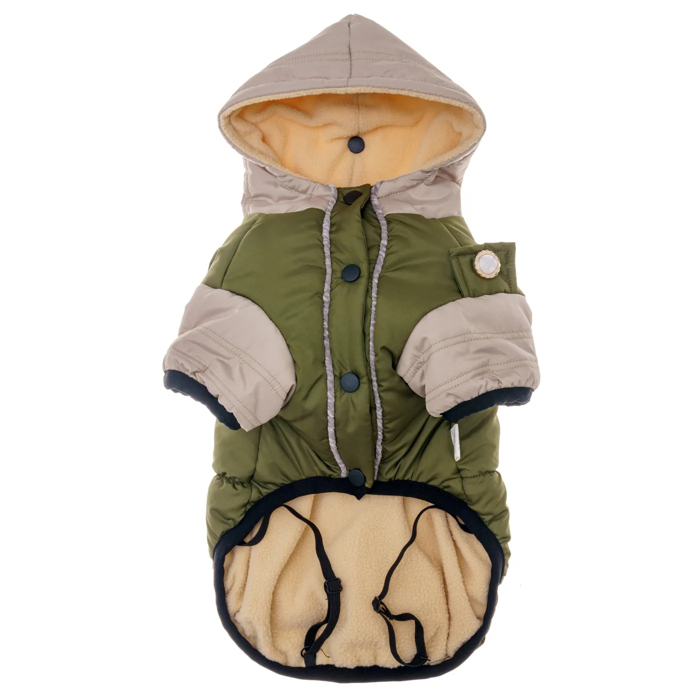 Kurtka COCO to idealne ubranko na zimę, które łączy styl, funkcjonalność i komfort. Wykonana z wodoodpornej tkaniny chroni pupila przed deszczem i śniegiem. Wnętrze kurtki wykończone jest miękkim polarem, który zapewnia ciepło i wygodę, a dodatkowa warstwa ocieplająca z bawełny zatrzymuje ciepło, dbając o komfort psa nawet w mroźne dni.