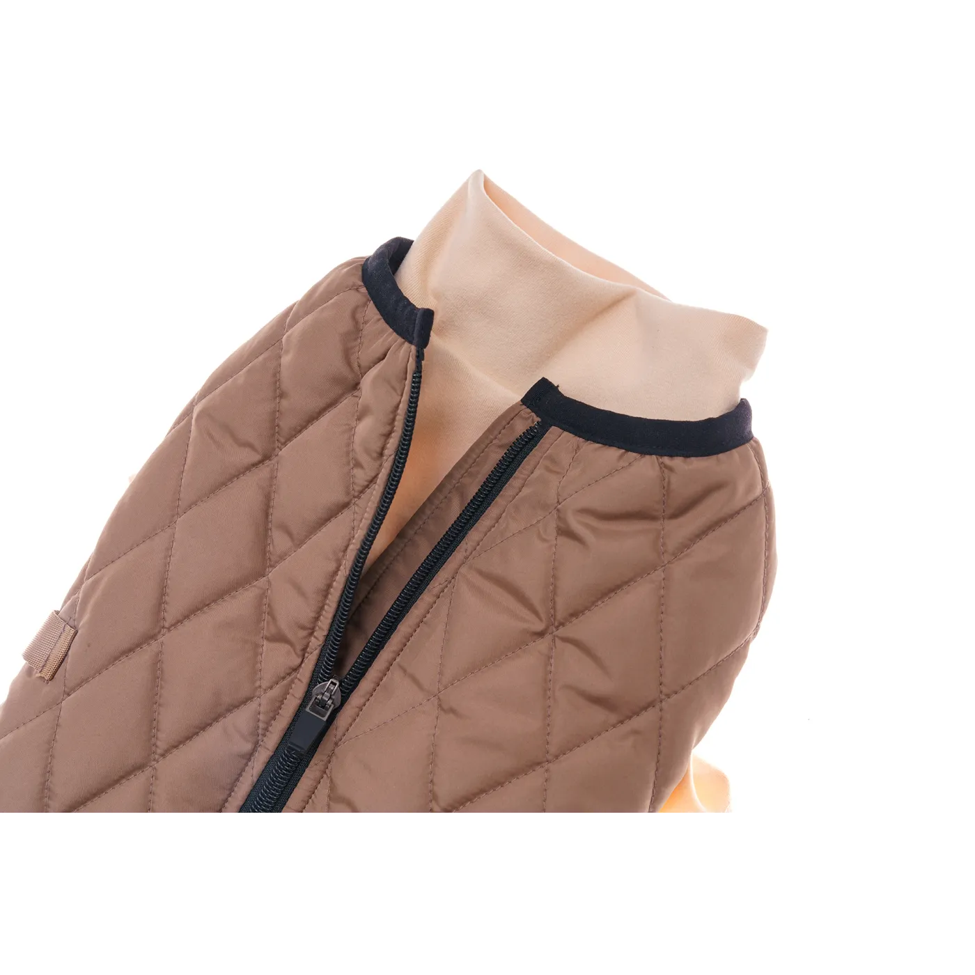 KURTKA DLA PSA ciepła miękka pikowana kamizelka z golfem brązowa L TIFI