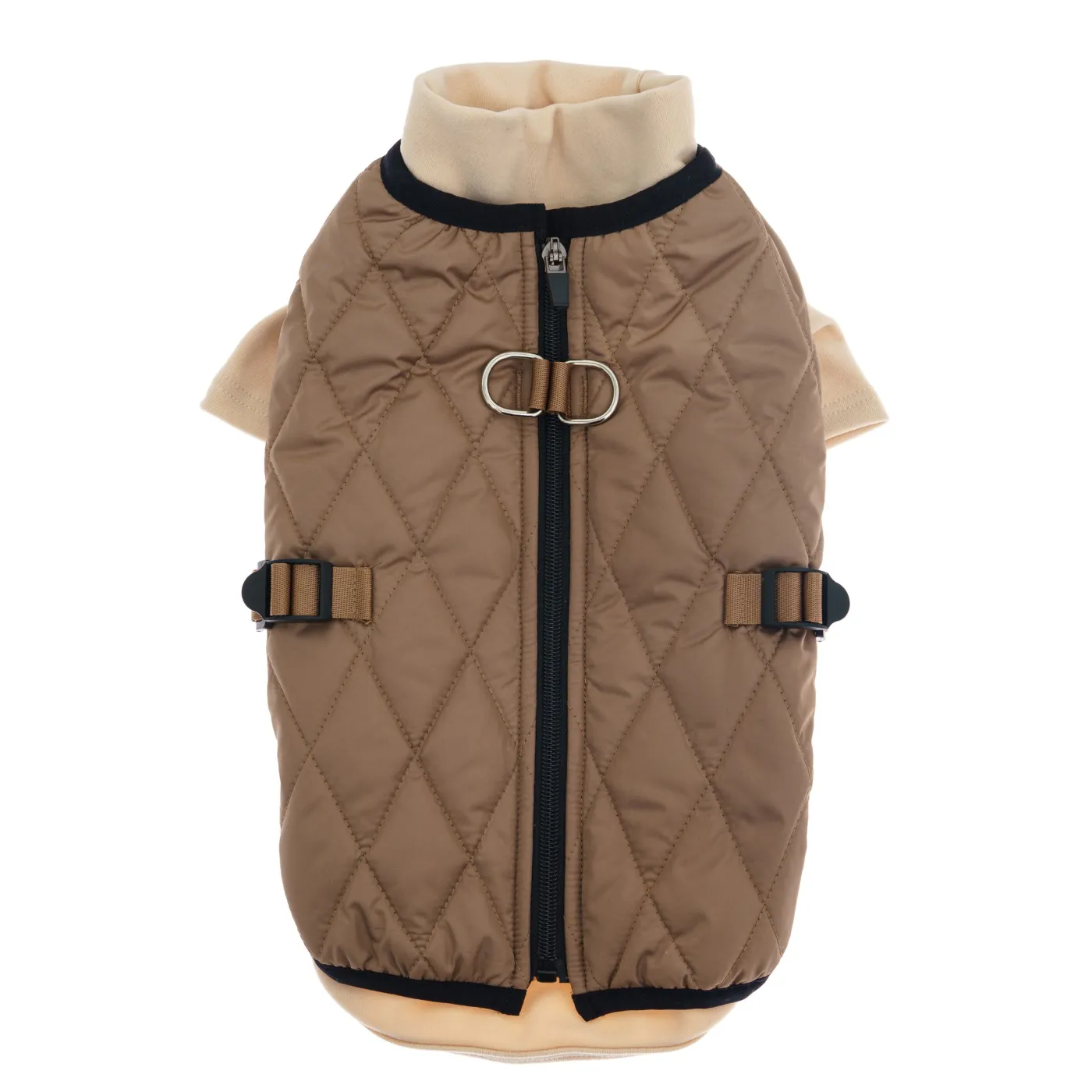 Kamizelka dla psa TIFI to miękkie, pikowane ubranko z golfem, które łączy komfort, funkcjonalność i styl. Wykonana z puszystej sherpy, wzmocniona eleganckim materiałem i podszyta polarem, zapewnia psu ciepło i wygodę podczas spacerów w chłodne dni.