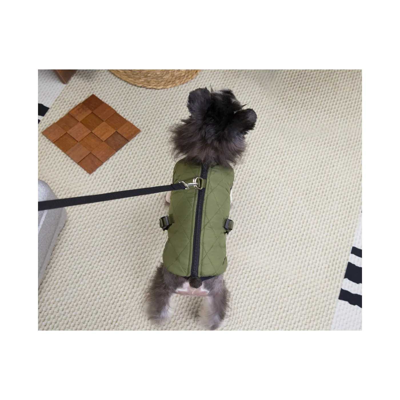 Wysoki golf chroni szyję pupila przed zimnem i wiatrem, a pikowana forma dodaje elegancji. Kamizelka dostępna jest w trzech wersjach kolorystycznych – brązowej, zielonej i bordowej – dzięki czemu każdy właściciel może dopasować styl do swojego psa.