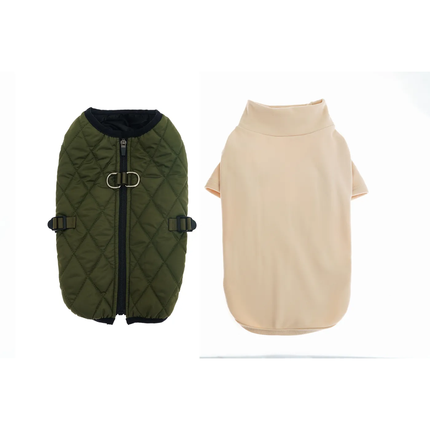 Kamizelka dla psa TIFI to miękkie, pikowane ubranko z golfem, które łączy komfort, funkcjonalność i styl. Wykonana z puszystej sherpy, wzmocniona eleganckim materiałem i podszyta polarem, zapewnia psu ciepło i wygodę podczas spacerów w chłodne dni.